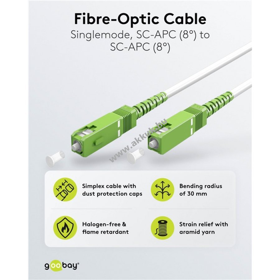 Az optikai patch kábel otthoni és ipari használatra alkalmas, kompatibilis Telekom Deutschland Vodafone Deutsche Glasfaser FTTH szolgáltatásaival. Biegeoptimizált Singlemode (OS2) szál 9/125µm a helytakarékos és alacsony csillapítású vezetésért. Használható FTTH FTTB FTTx rendszerekben otthon irodában és adatközpontokban. Kapcsolatot biztosít a ház átadópontja és a belső optikai modem között. Támogatja akár 100 Gbit/s sebességet LSZH szabványnak megfelelő halogénmentes és nehezen éghető kábelburkolattal. Aramid szálas húzóvédelem a nagyobb tartósságért. Porvédő sapkával ellátott Simplex SC-APC 8° csatlakozó. Egyedi mérési jegyzőkönyv Return Loss és Insertion Loss értékekkel.