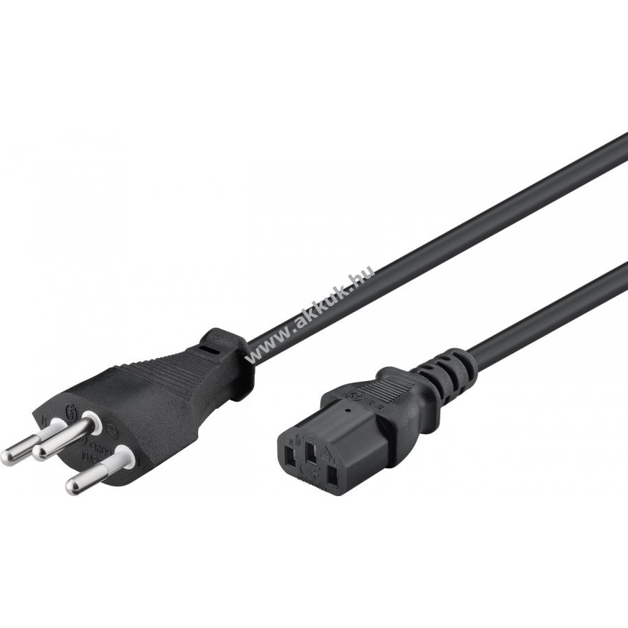 Univerzális hálózati kábel Svájci dugóval (Típus J SEV 1011) és C13 hidegcsatlakozóval. Alkalmas PC, monitor, projektor, laptop és más hidegcsatlakozós eszközök táplálására. Ideális használt kábel cseréjéhez.