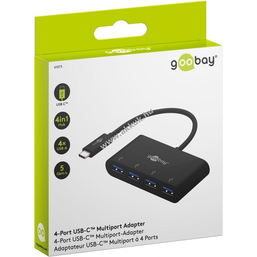 Négy USB-A csatlakozó gyors adatátvitelhez és töltéshez akár 5 Gbps sebességgel. Kompatibilis USB-C portos számítógépekkel és okoseszközökkel. Egyszerű használat.