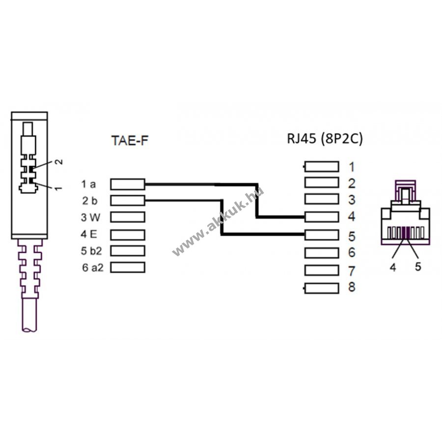- RJ45 dugó rögzítőfüllel és TAE-F dugó hajlításgátlóval
