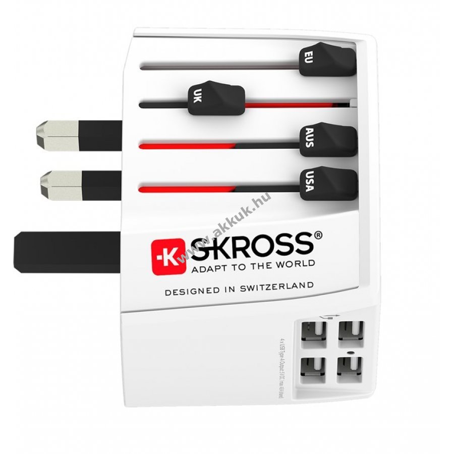 A kompakt Skross MUV USB utazóadapter több mint 220 országban biztosítja a hálózati csatlakozást. Az erős beépített USB töltővel egyszerre akár négy USB-eszköz is tölthető.