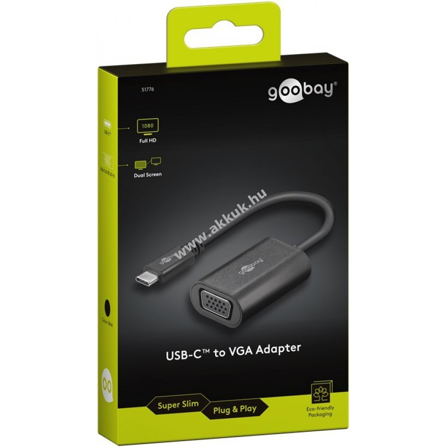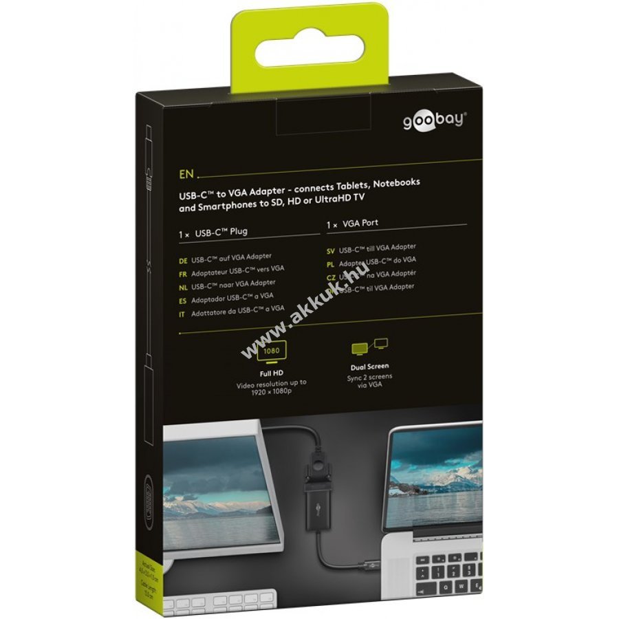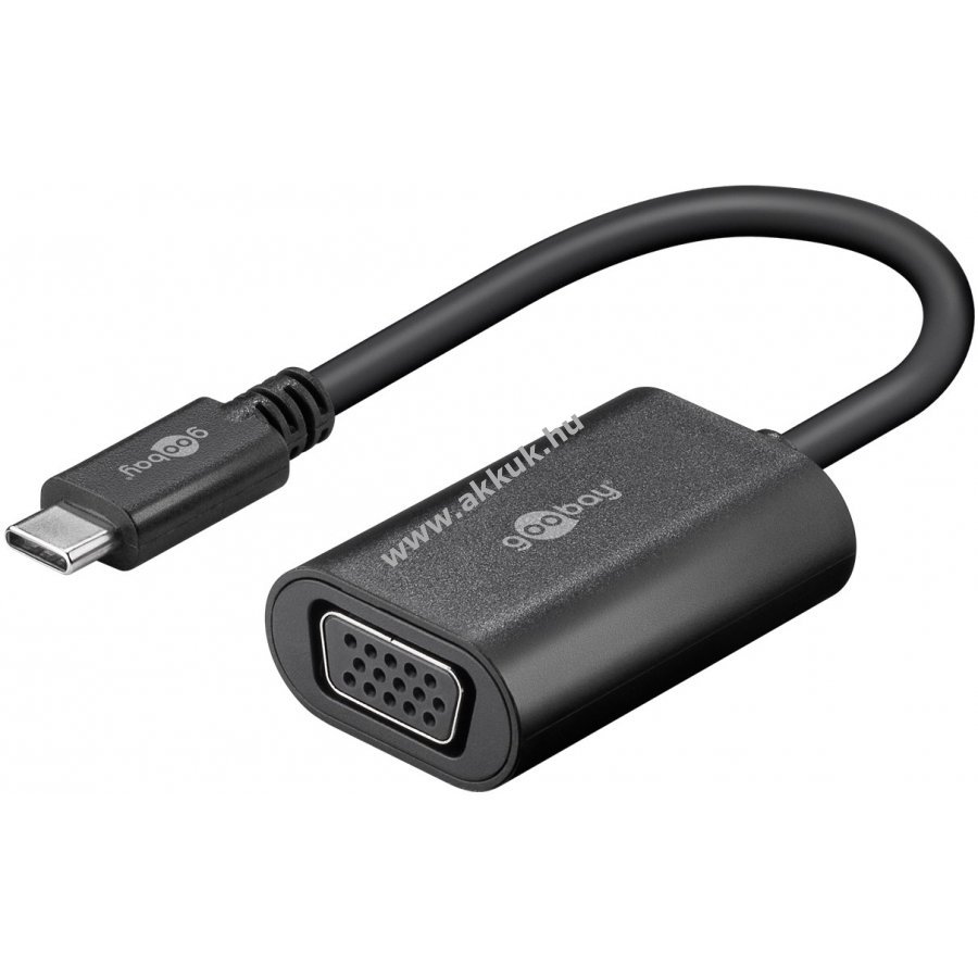 A Goobay USB-C VGA adapter USB-C jeleket VGA eszközökre tükröz. Egyszerű használatot biztosít és támogatja a Full HD felbontást 1920 x 1080p 60 Hz-en.