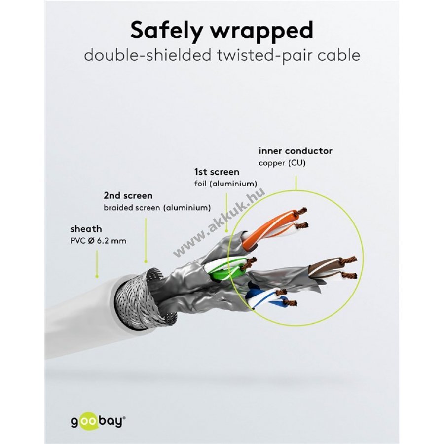 Az Ethernet kábel 2000 MHz átviteli sávszélességgel rendelkezik, ami négyszerese a CAT 6A kábelekének.