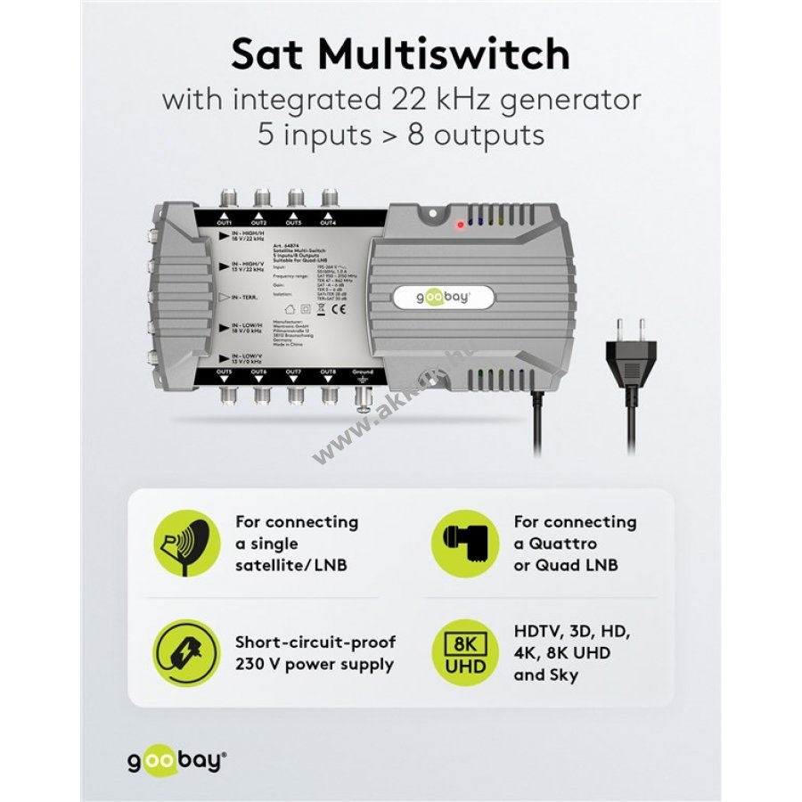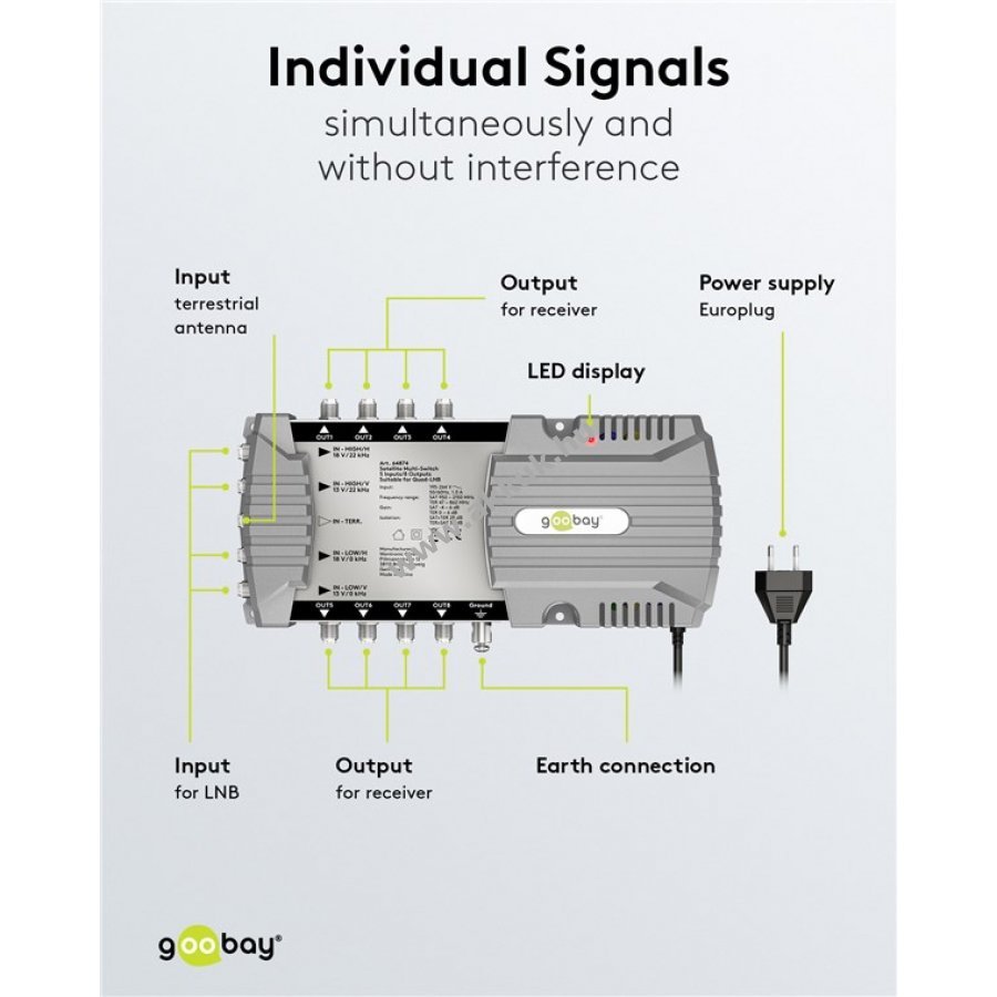 A multiswitch kényelmes megoldás több TV és rádió készülék egyetlen műholdvevő antennához történő csatlakoztatásához ugyanabban az épületben. Minden 8 felhasználó egyedi műsorokat fogadhat zavartalanul és egyszerre a maximális rugalmasság érdekében.