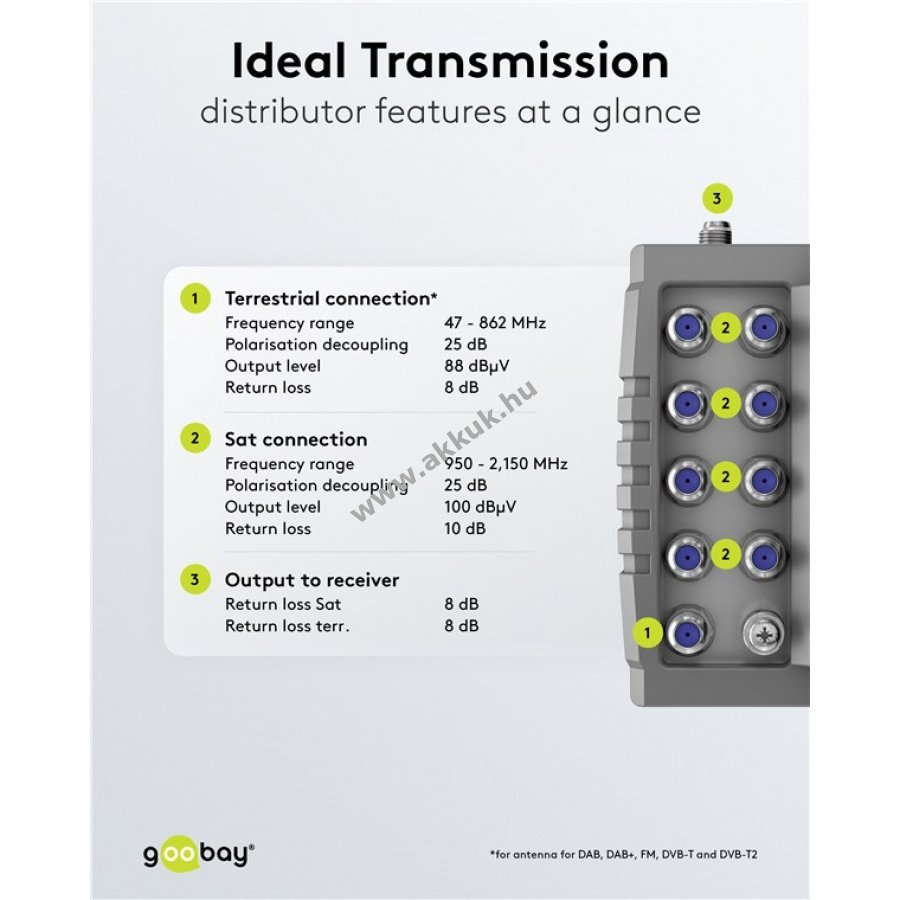 Koaxiális kábelen keresztül akár 4 felhasználóhoz továbbítja a jelet, például műholdvevőhöz vagy TV-hez