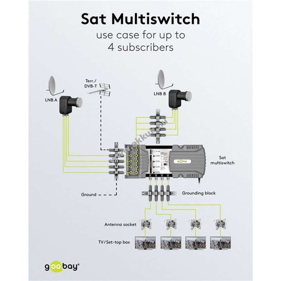 A multiswitch kényelmes megoldás több televízió és rádió készülék egy műholdvevő antennához történő csatlakoztatásához ugyanabban az épületben. Minden 4 felhasználó saját egyedi programot nézhet egyszerre zavartalanul és rugalmasan.