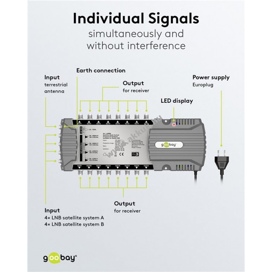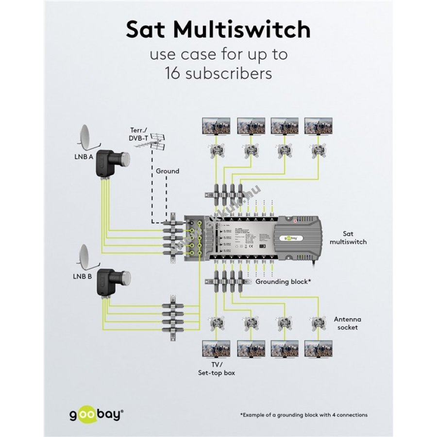 A multiswitch egyszerű megoldás több TV és rádiókészülék egyidejű csatlakoztatására egy műholdvevő antennához ugyanabban az épületben. Minden 16 felhasználó egyedi műsorhoz férhet hozzá maximális rugalmasság mellett.