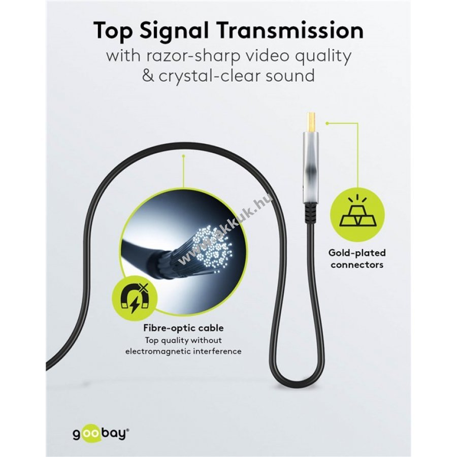 Az optikai Ultra High-Speed HDMI kábel akár 100 m hosszú távolság áthidalására alkalmas és nagyobb rugalmasságot valamint magasabb adatátviteli sebességet biztosít hagyományos rézkábeleknél. 8K felbontású UHD jelátvitelt támogat 60 Hz-en (4320p) és akár 48 Gbit/s maximális adatátviteli sebességet. Támogatja az ARC (Audio Return Channel), HDCP és 4K 3D tartalmakat. Az AOC technológián alapuló 8K üvegszálas kábel hibrid üvegszál-rezisztes rézvezetővel rendelkezik a zavartalan jelátvitel érdekében. Az üvegszálas kábel az elektromos jeleket optikai jelekké alakítja és a kábel végén vissza elektromos jellé (egysávos átvitellel). A vékony, strapabíró fém csatlakozók hajlításvédővel rendelkeznek, így szűk helyeken is használhatók. Alkalmas TV-k, monitorok, játékkonzolok (pl. PlayStation 5, Xbox Series X), projektorok és streaming eszközök (Amazon Fire TV, Apple TV) összekapcsolására. Az üvegszálas anyag nagyfokú hajlékonyságot biztosít és nagyon kis hajlítási sugarat tesz lehetővé.