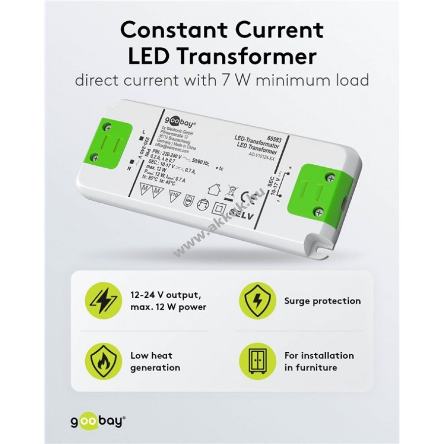 A 700 mA állandó kimeneti áram 10-17 V közötti feszültségtartományban védi az LED-eket a túláramtól és növeli élettartamukat.