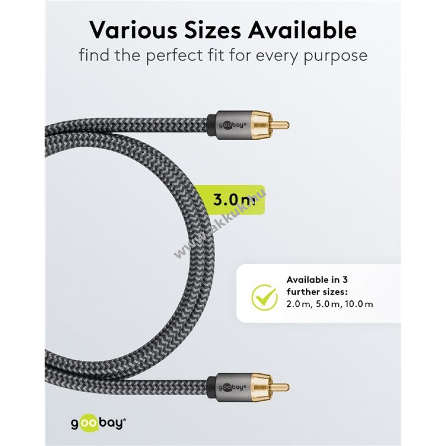 A Goobay Plus sorozat elegáns fém kivitelben Sharkskin szürke színben. A kábel kifejezetten analóg mélyfrekvenciás jelekhez készült subwooferekhez a mély, erőteljes basszusokért kiváló zenei és filmes élményhez.