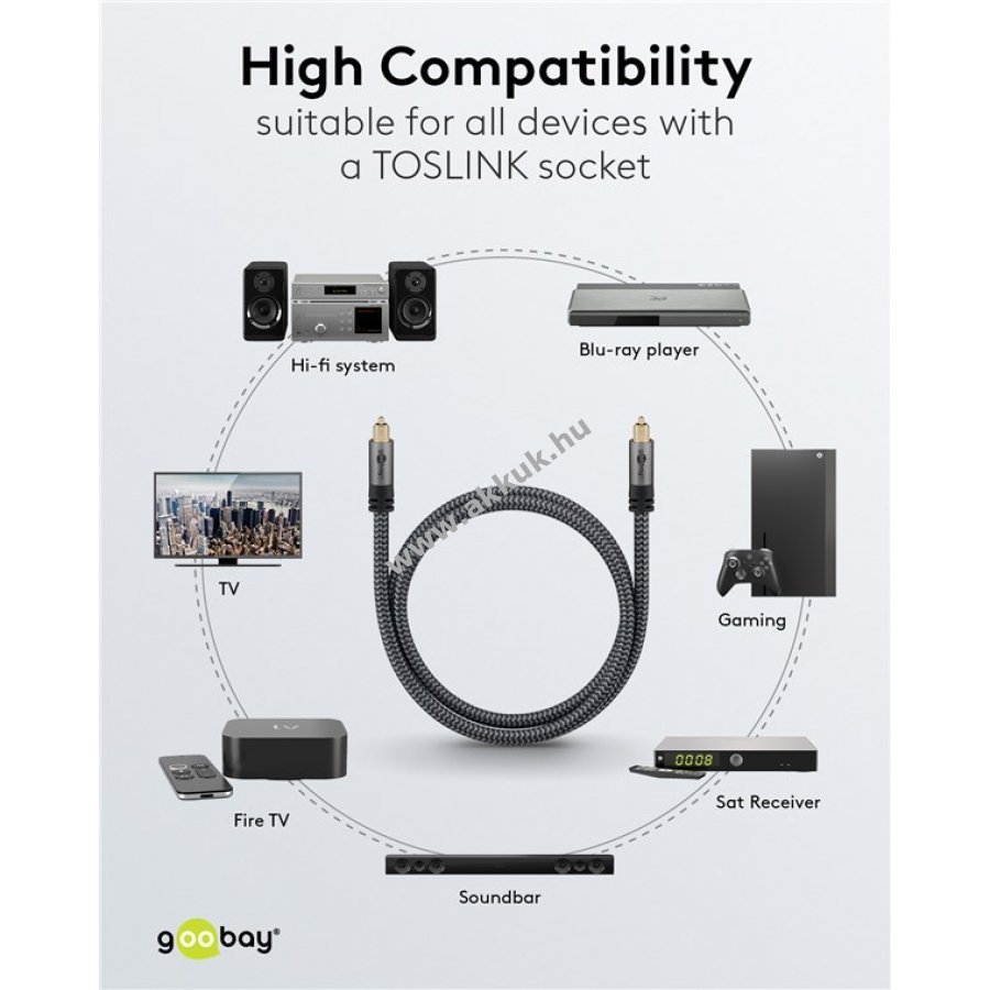 A kábel alkalmas televíziók játék konzolok és Blu-ray lejátszók csatlakoztatására HiFi eszközökhöz mint SoundBar erősítő vagy sztereó rendszer.