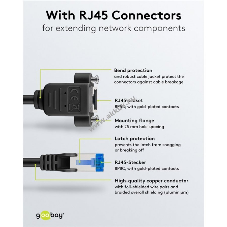 A CAT 6A kábel kiváló jelátvitelt és stabil kapcsolatot biztosít nagy sebességű hálózatokhoz. Magas minőségű réz vezető és aranyozott érintkezők garantálják a megbízható adatátvitelt. A dupla árnyékolás (S/FTP) alumínium fólia és fonott árnyékolás kombinációja a zavarszűrést optimalizálja. A kábel külső LSZH anyaga halogénmentes és tartós. A szerelősín 25 mm-es furattávolsággal rögzíthető például slotlemezre vagy kábelcsatornába. Az RJ45 csatlakozó EIA/TIA 568B szabvány szerinti bekötésű és 10Gbit/s sebességig kompatibilis.