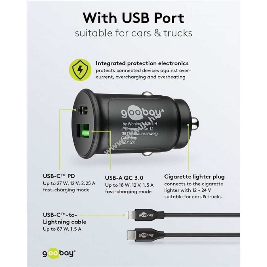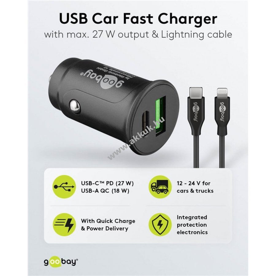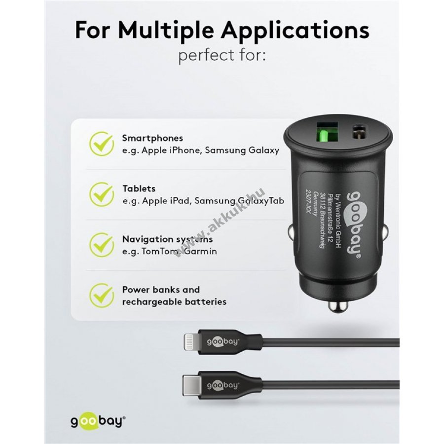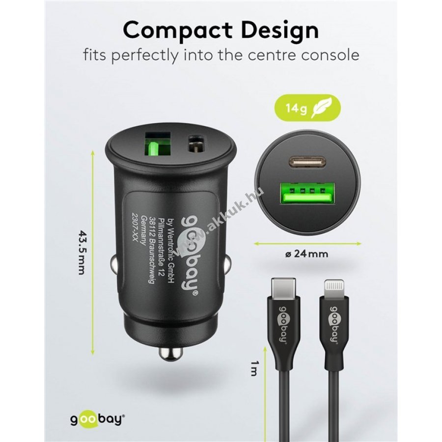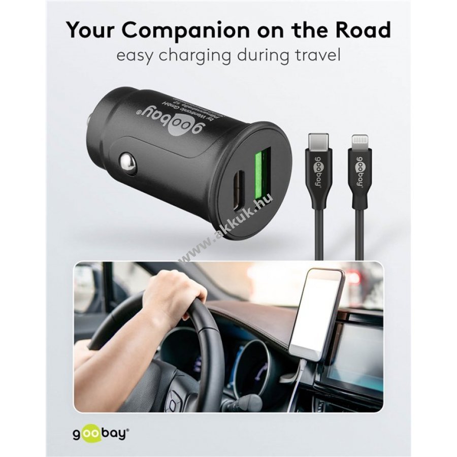 Innovatív Goobay töltőkészlet két USB csatlakozóval gyors és biztonságos töltést biztosít autóban. Kompakt kialakításával kevés helyet foglal és esztétikusan illeszkedik a belső térbe.