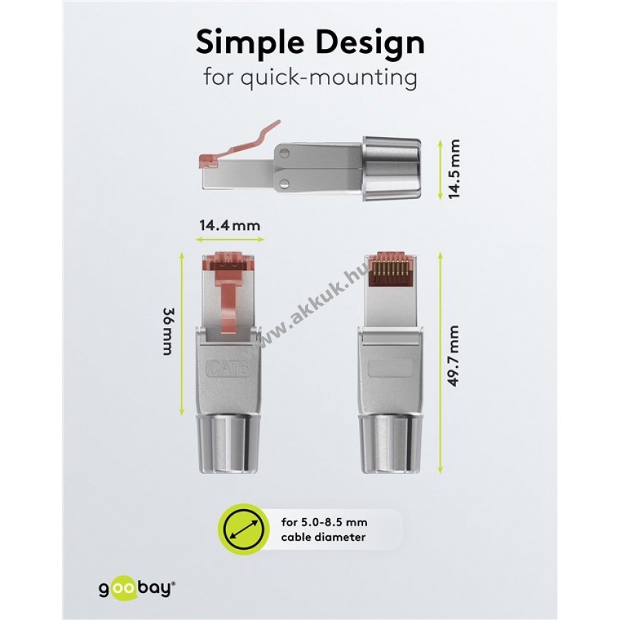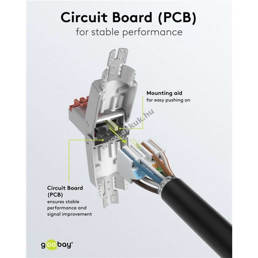 - Egyedi hosszúságú CAT-6 hálózati kábelek készítéséhez alkalmas 180°-os kábelvezetővel