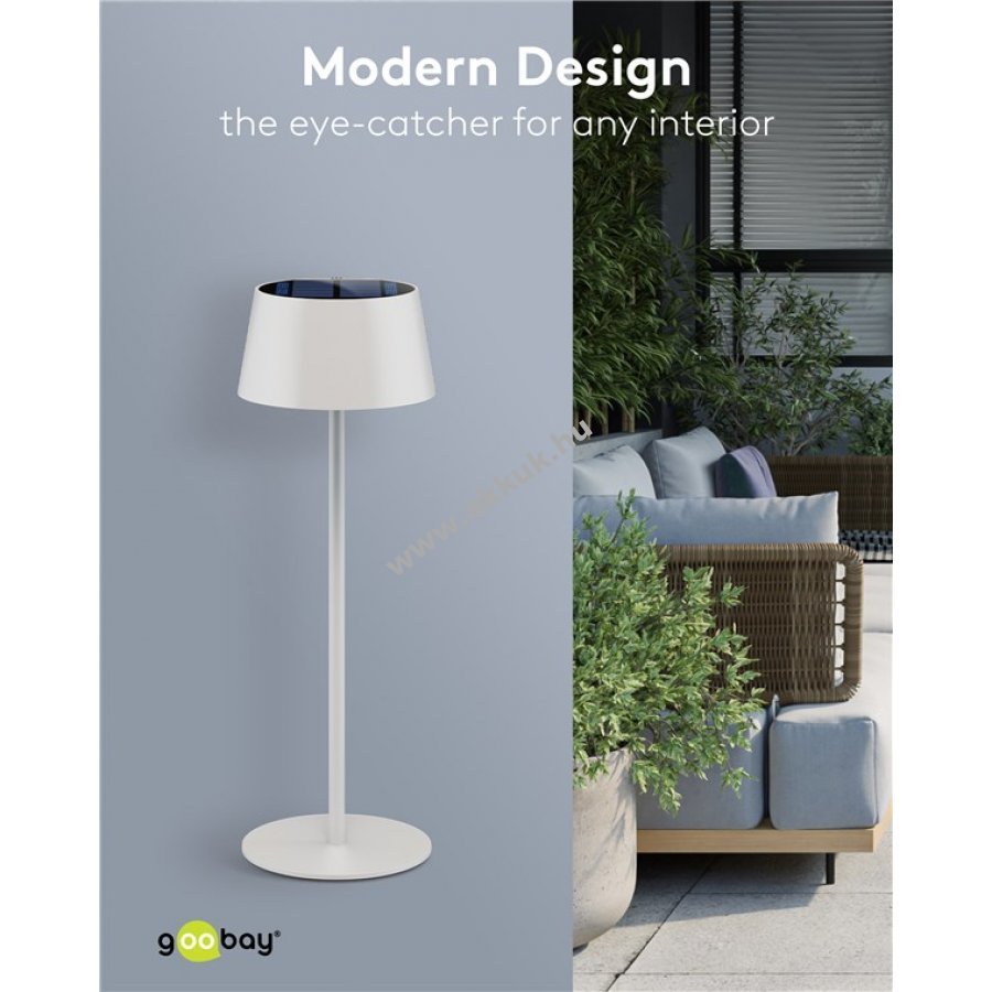 Modern skandináv dizájnú asztali lámpa nappaliba hálószobába étkezőbe és kerti partikra egyaránt. Környezetbarát töltés beépített napelemmel a fenntarthatóságért és hosszú élettartamért.