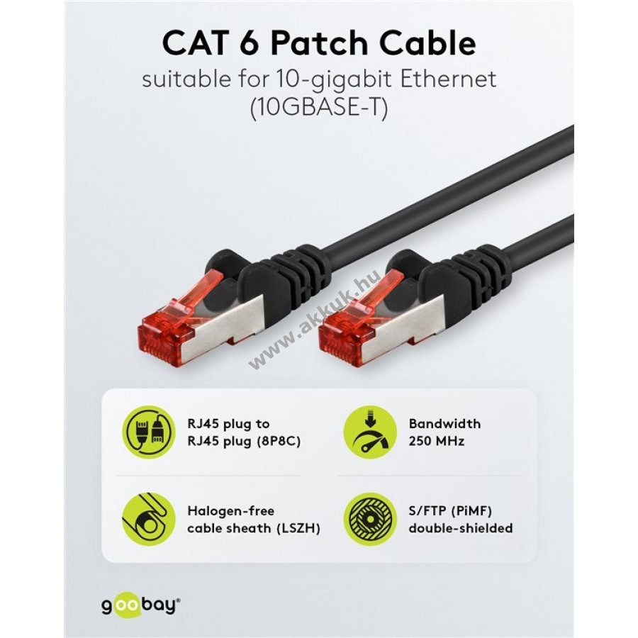 A 10 darabos Goobay CAT 6 kábel szett kiváló jelátvitelt és stabil kapcsolatot biztosít nagy sebességű hálózatokhoz.