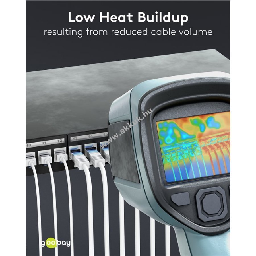 Ultravékony CAT 6A patchkábel extrarövid RJ45 csatlakozókkal a szerver szekrények és patchpanelek anyagigényének csökkentésére és jobb légáramlásért.