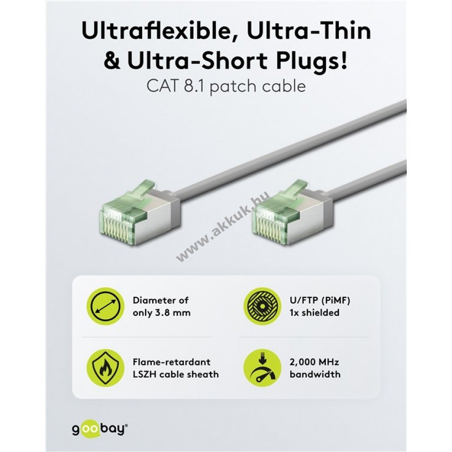 - extra vékony LAN kábel 15,3 mm hosszú RJ45 csatlakozókkal a kisebb helyfoglalásért