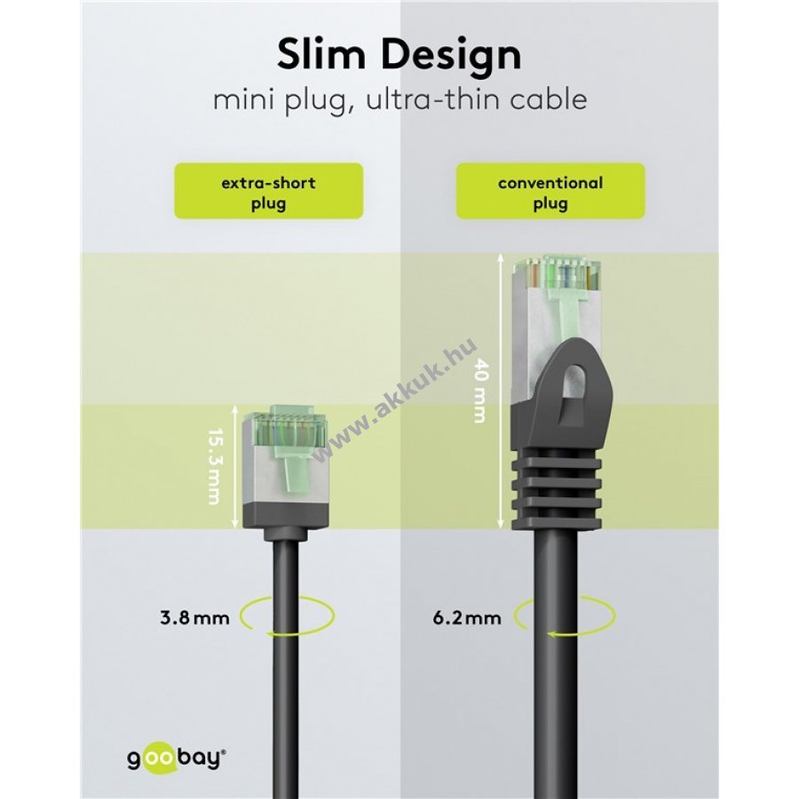 Kiválóan rugalmas és anyagtakarékos CAT 8.1 hálózati kábel extrarövid RJ45 csatlakozókkal a szerver szekrények és patchpanelek helytakarékos bekötéséhez