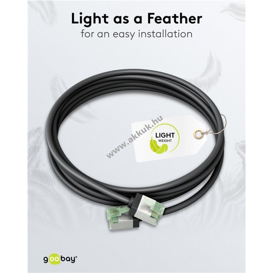 Nagyon vékony LAN kábel 15,3 mm-es RJ45 csatlakozóval kevesebb helyet foglal.