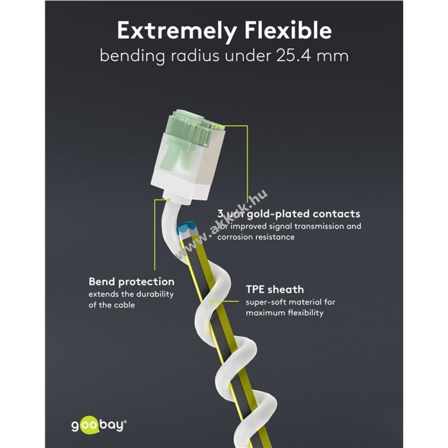 Az AWG 32 vezetékvastagság és 3,8 mm külső átmérő mellett is teljesítményben megegyezik a szabványos CAT kábelekkel.