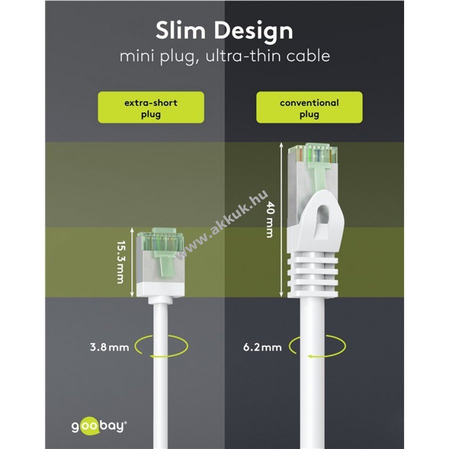 Kiválóan alkalmas szerver szekrények és patchpanelek anyagigényének csökkentésére a rendkívül vékony kialakításával és rövid csatlakozóival. Javítja a levegő áramlását és csökkenti a hőfelhalmozódást a hagyományos kábelekhez képest. A puha TPE külső burkolat és a vékony AWG 32 réz vezető nagyfokú rugalmasságot és anyaghatekonyságot biztosít.