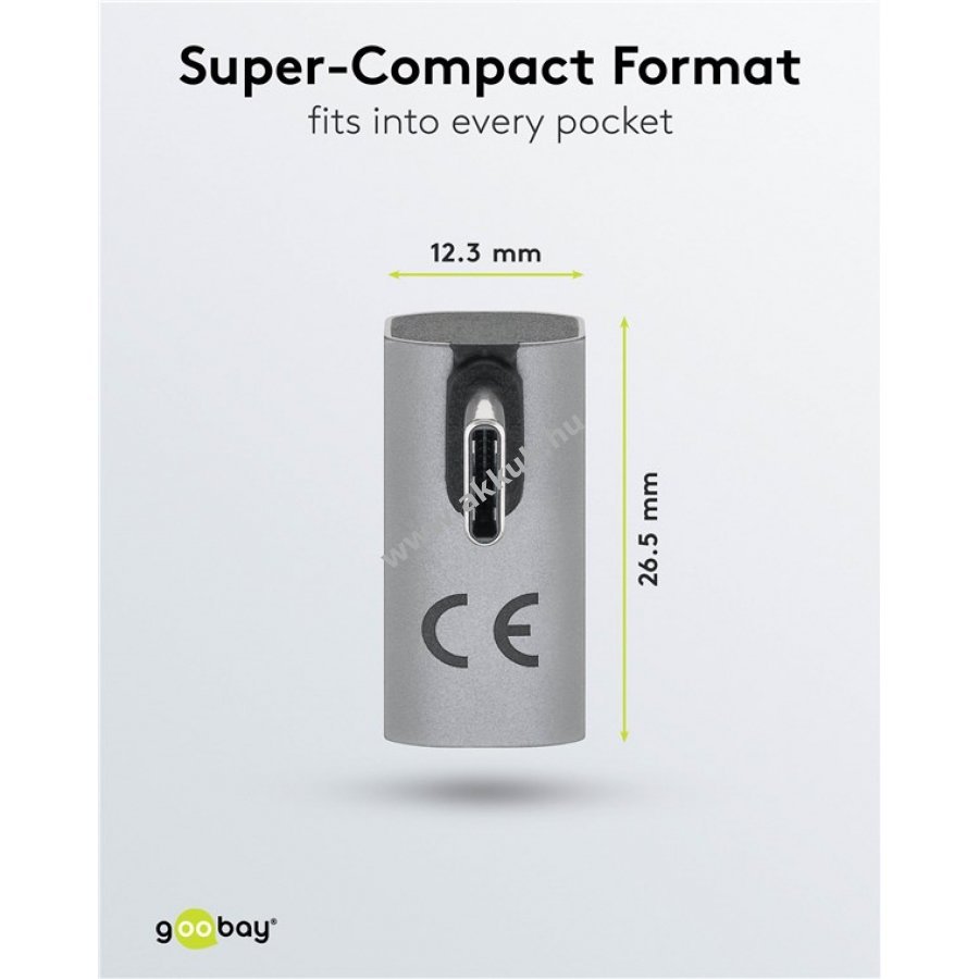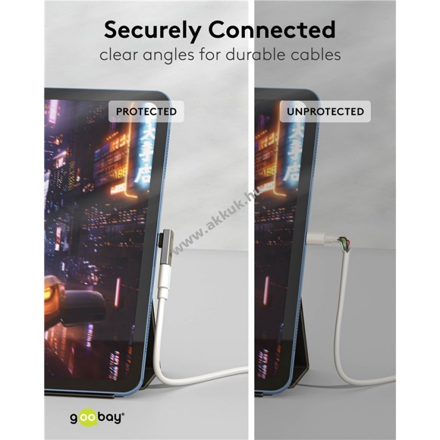 Az L alakú USB-C csatlakozó 90 fokos elforgatása helytakarékos kábelvezetést tesz lehetővé közvetlenül az eszköz mellett és csökkenti a kábel törését