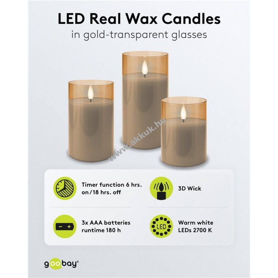 A valódi viasz gyertyák eleganciáját ötvözi a modern és biztonságos LED világítással. A lengő kanóc és a viasz bevonat meleg, harmonikus fényt ad valódi gyertya hatásával, égés, korom és tűzveszély nélkül. Ideális dekoráció évszakokhoz és ünnepekhez.