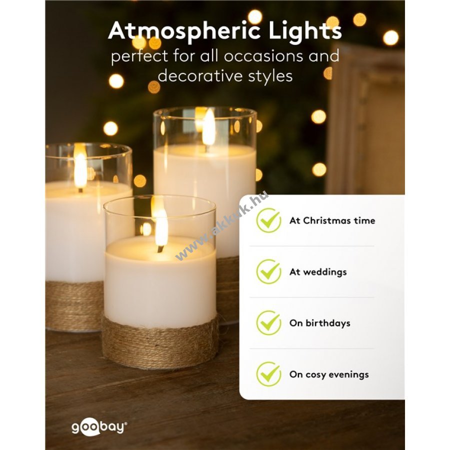 A valódi viaszos gyertyák eleganciája és a modern biztonságos LED technológia ötvözete meleg hangulatot teremt füst és tűzveszély nélkül. 3 különböző méretű gyertya természetes lánghatással ideális dekorációhoz nappaliba étkezőbe éjszakai fénynek vagy ünnepi dísznek.