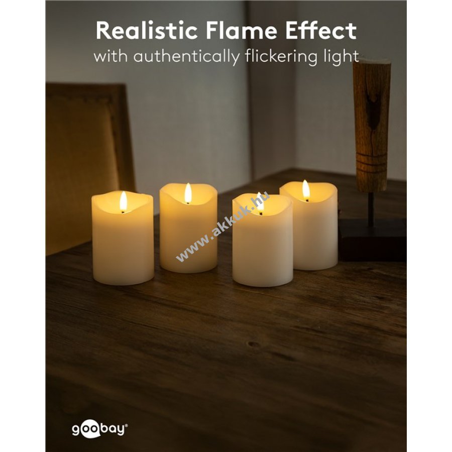 A gyertyák mozgó kanóccal és viaszos bevonattal rendelkeznek így valósághűen pislákolnak füst és égési veszély nélkül
