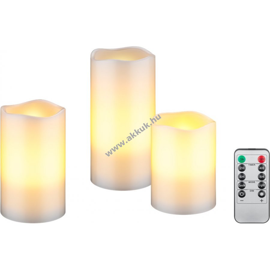 Három különböző méretű stílusos gyertya meleg fényt biztosít természetes pislákolással, teljesen elektromosan és biztonságosan.