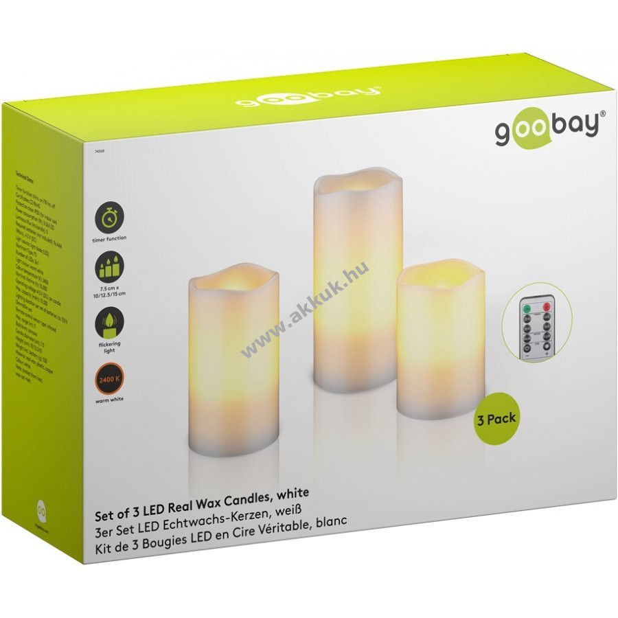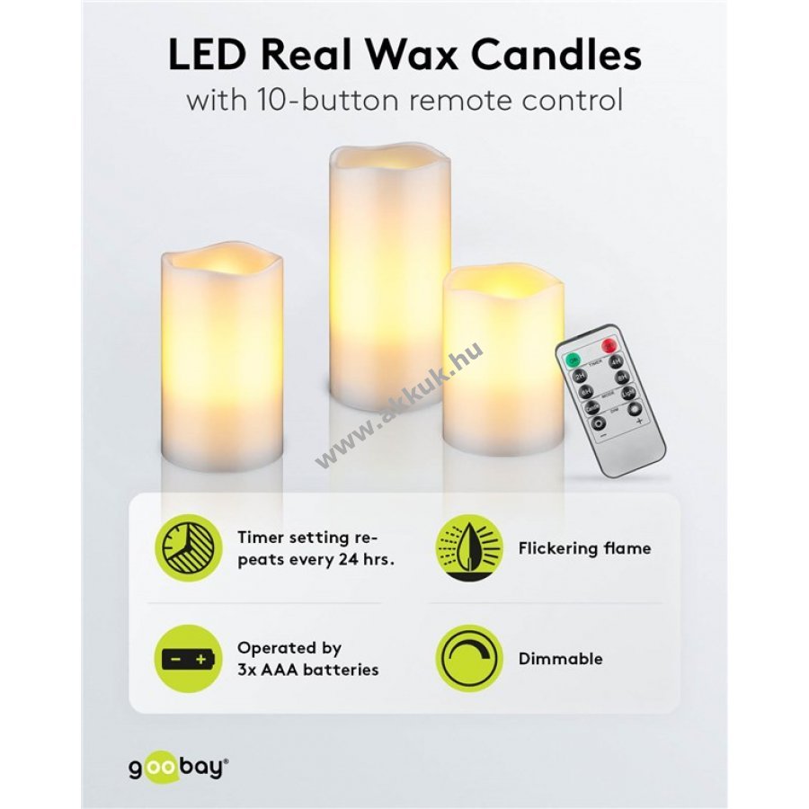 Minden gyertya 3x AAA (mikroelem) elemmel működik, melyek nem tartozékok.