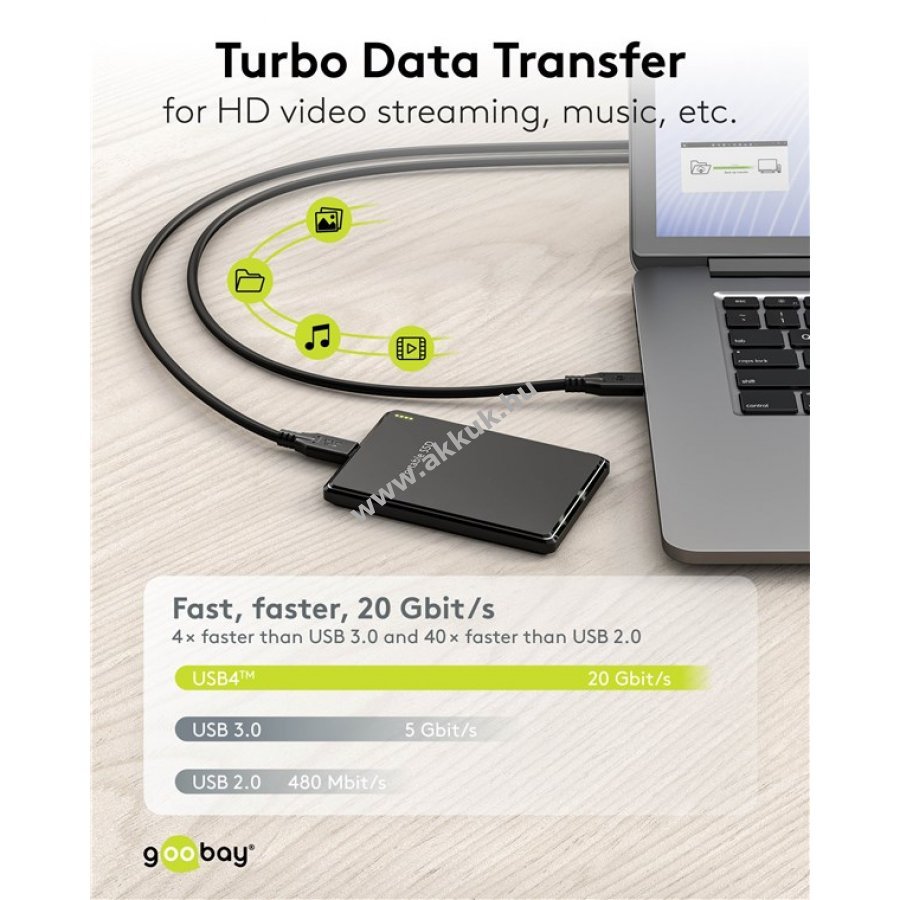 Magas teljesítményű USB-C kábel USB4 technológiával 240 W és 20 Gbit/s adatátviteli sebességgel. 2 m hosszúság fekete kivitelben. Kiválóan alkalmas nagy teljesítményű laptopok, dokkolóállomások, grafikus kártyák és alaplapok csatlakoztatására Thunderbolt 4 portokkal. 3D-s és 4K @ 60 Hz felbontás támogatása kristálytiszta videóélményért. 240 W Power Delivery (EPR) biztosítja a gyors és stabil töltést energiaigényes eszközök számára. HDR10 támogatás streaminghez külső monitorokra, televíziókra vagy projektorokra. Támogatja a DisplayPort 2.1 és PCIe 4.0 adatátvitelt, valamint kompatibilis Thunderbolt 3 és 4 portokkal. Visszafelé kompatibilis USB 3.2, 3.1 és 3.0 szabványokkal. Ideális magas szintű játék- és multimédiás eszközökhöz, például Razer Blade 18, Corsair Voyager, Apple Studio Display és AMD Ryzen processzorokhoz.