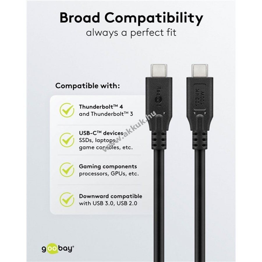 Nagy teljesítményű USB-C kábel 100 W Power Delivery támogatással gyors töltéshez és akár 10 Gbit/s adatátviteli sebességgel. Ideális nagy teljesítményű laptopokhoz, dokkolókhoz és külső meghajtókhoz. 4K @ 60 Hz videó támogatás kristálytiszta képminőségért. Kompatibilis Thunderbolt™ 3 és 4 portokkal valamint AMD AM5 foglalattal. Támogatja a legnépszerűbb gyártók készülékeit, mint Lenovo HP Dell Apple MacBook és iPad.