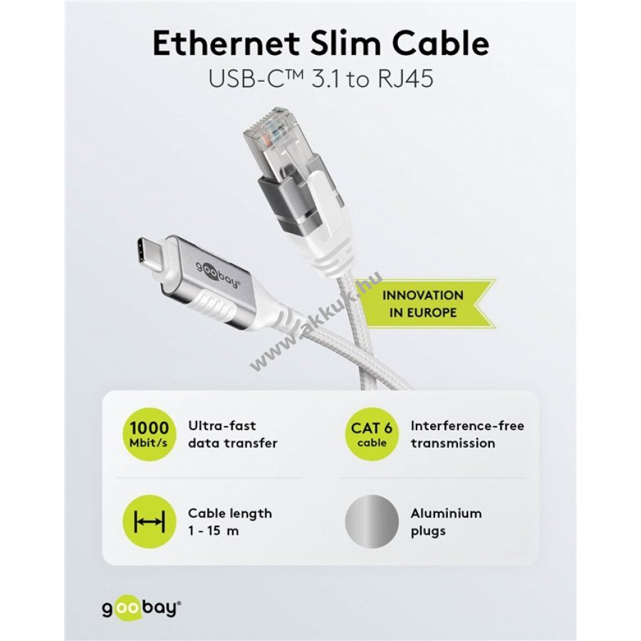 Innovatív adapterkábel USB-C eszközökhöz RJ45 csatlakozó nélkül az egyszerű hálózati kapcsolatért. Az USB-csatlakozóba épített Smart-chip az eddigi bonyolult RJ45-USB-C adaptereket váltja fel. Telepítés nélkül azonnal használható Ethernet kapcsolat. Kompatibilis Apple Thunderbolt 3 portokkal is.