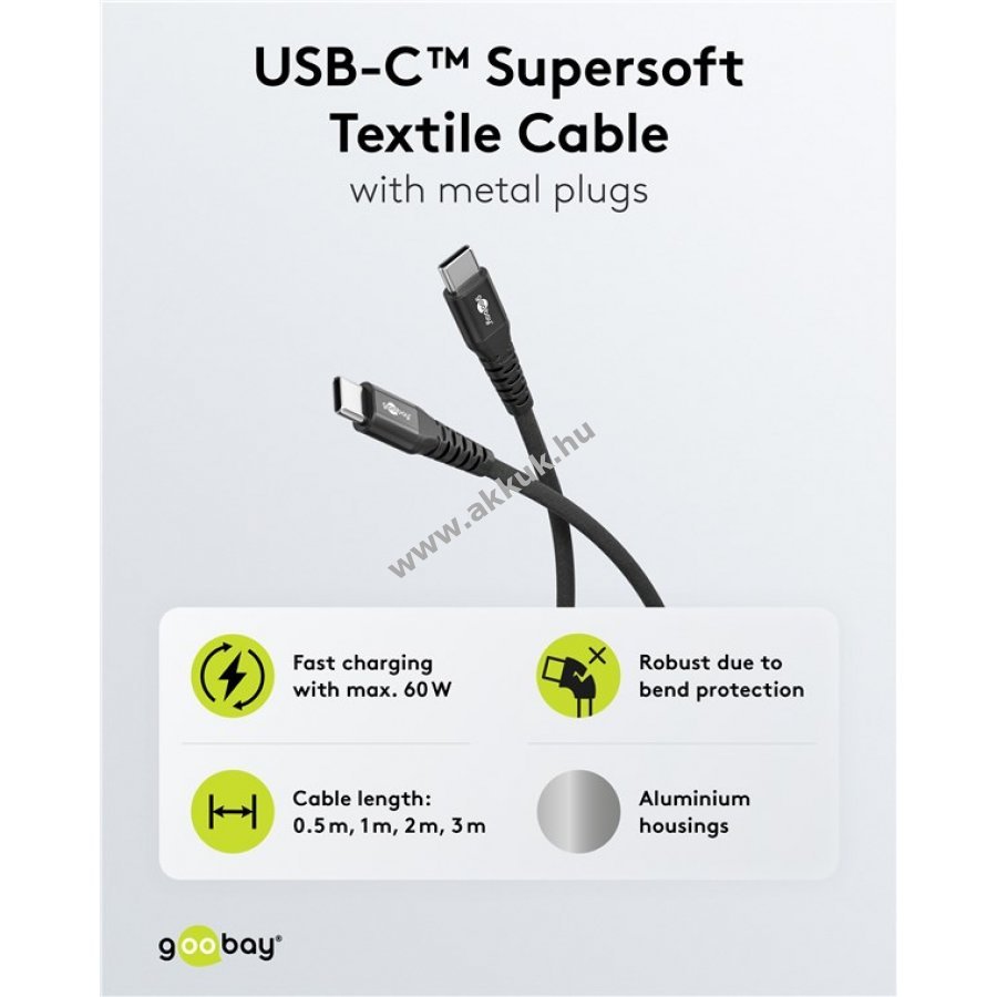 Rugalmas szilikon és textil borításának köszönhetően az USB-C kábel ellenáll a mindennapi használat és utazás megpróbáltatásainak. 60 W-os gyorstöltéssel és akár 480 Mbit/s adatátvitellel biztosít teljesítményt és megbízhatóságot. 10 000 hajlítási ciklusra tervezett megerősített fém csatlakozók tartósságot garantálnak. A fonott textil külső kényelmes tapintású és kíméletes a felületekhez. Kompatibilis számos okostelefonnal, tablettel és laptoppal, többek között az Apple iPhone 15 és iPad modellekkel. 2 m hosszúságával kényelmes használatot tesz lehetővé.
