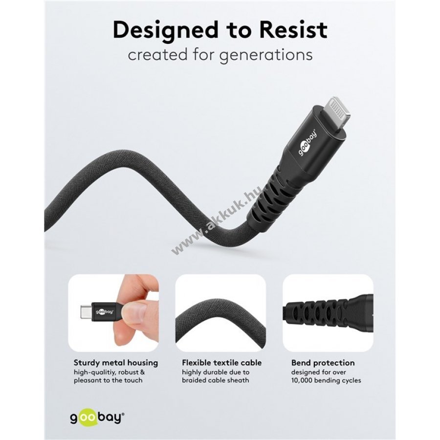 Erős védelem és teljesítmény egy kábelben. A rugalmas szilikon és textil borítás ellenáll a mindennapi használatnak és utazásnak. A 60 W-os gyorstöltés megszünteti az energiahiányt és a kábel törésének kockázatát.