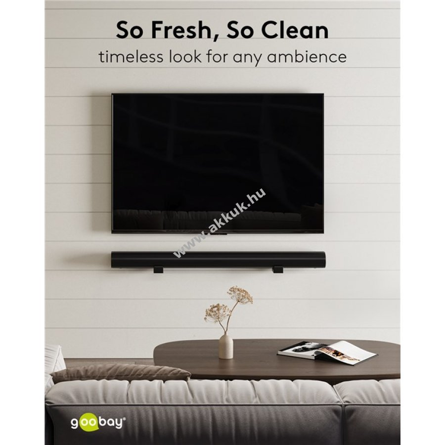 A soundbar tartó egyszerűen és gyorsan felszerelhető a falra például a TV alá így biztosítva a tökéletes hangzást és esztétikus megjelenést kiegészítve a televíziót anélkül hogy különálló szekrényre vagy polcra lenne szükség