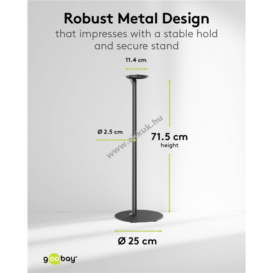A tartós fém konstrukció biztonságos rögzítést nyújt akár 3 kg tömegű műholdas hangszóróknak.
