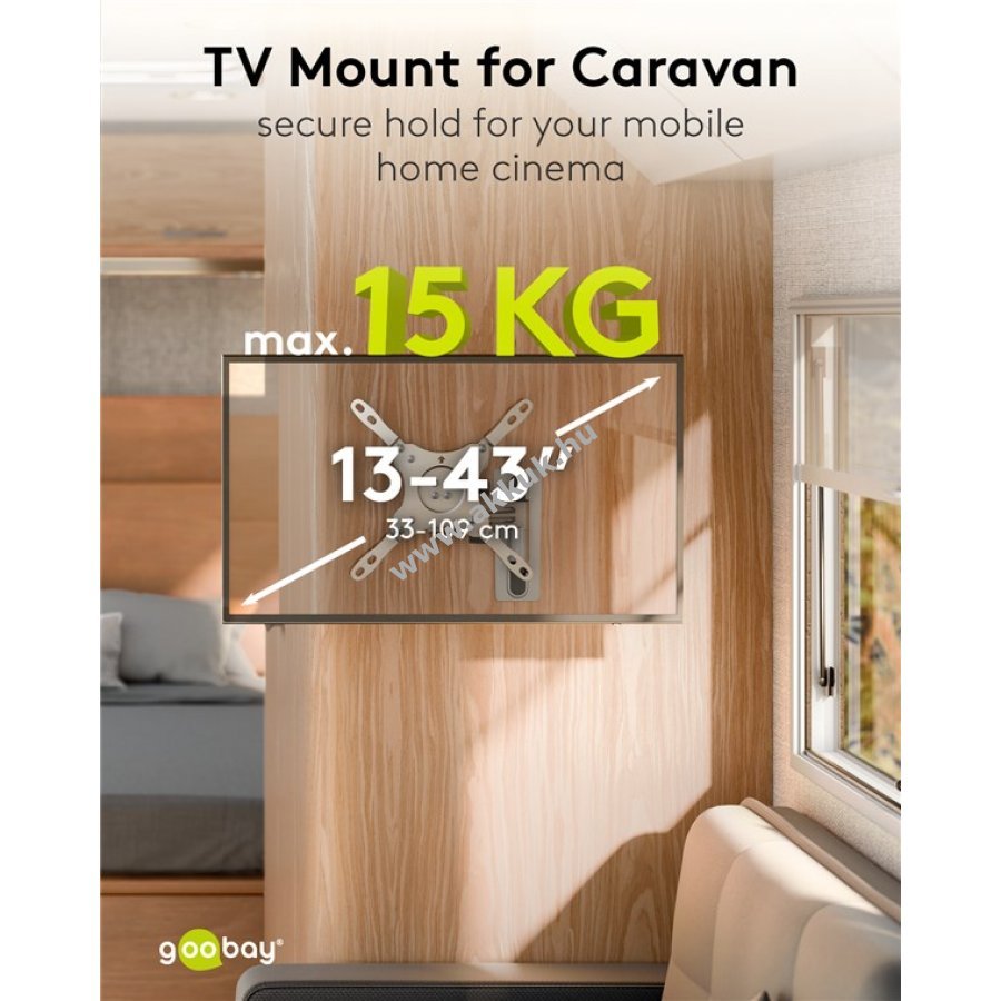 Praktikus falirögzítő lakóautóba vagy lakókocsiba akár 43 colos képernyőméretig 15 kg súlyhatárig. Biztonságos rögzítés a rögzítőcsavarral rezgésmentes utazásért.