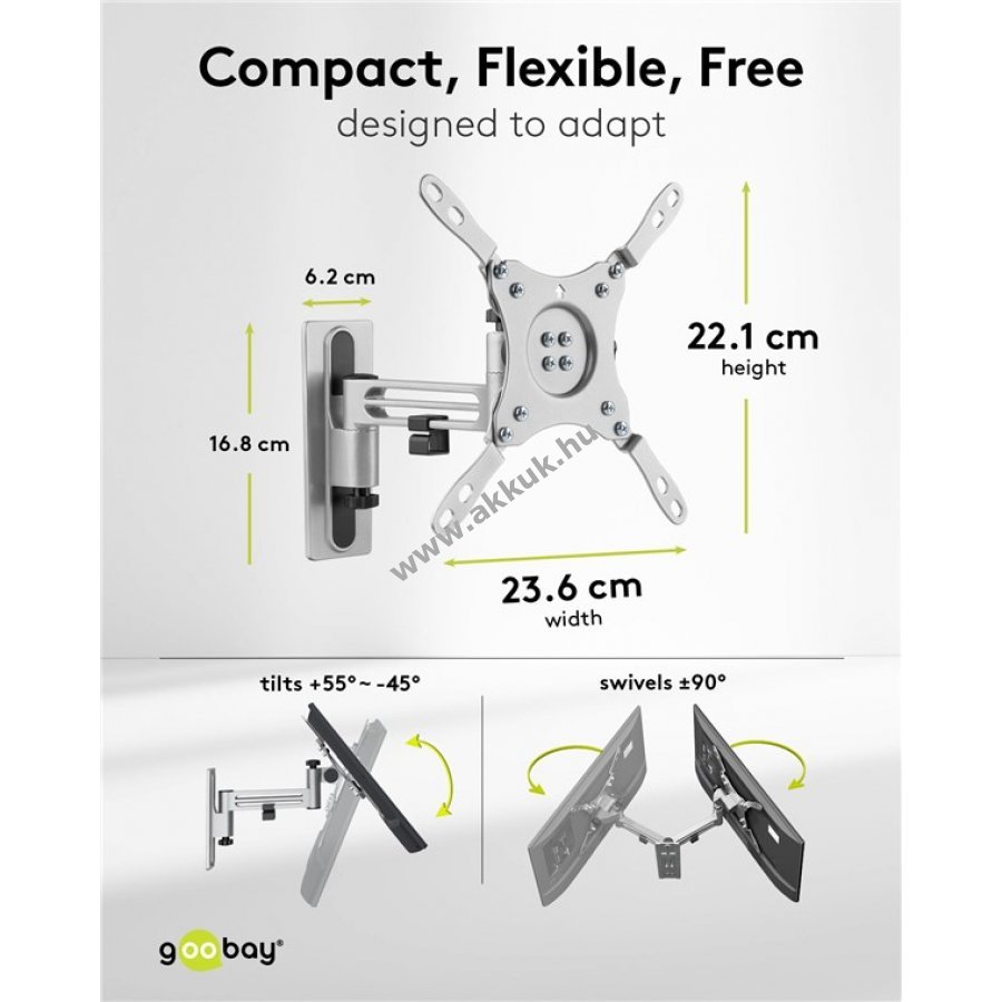 - +55/-45° dönthető és minden csuklón ±90° elforgatható