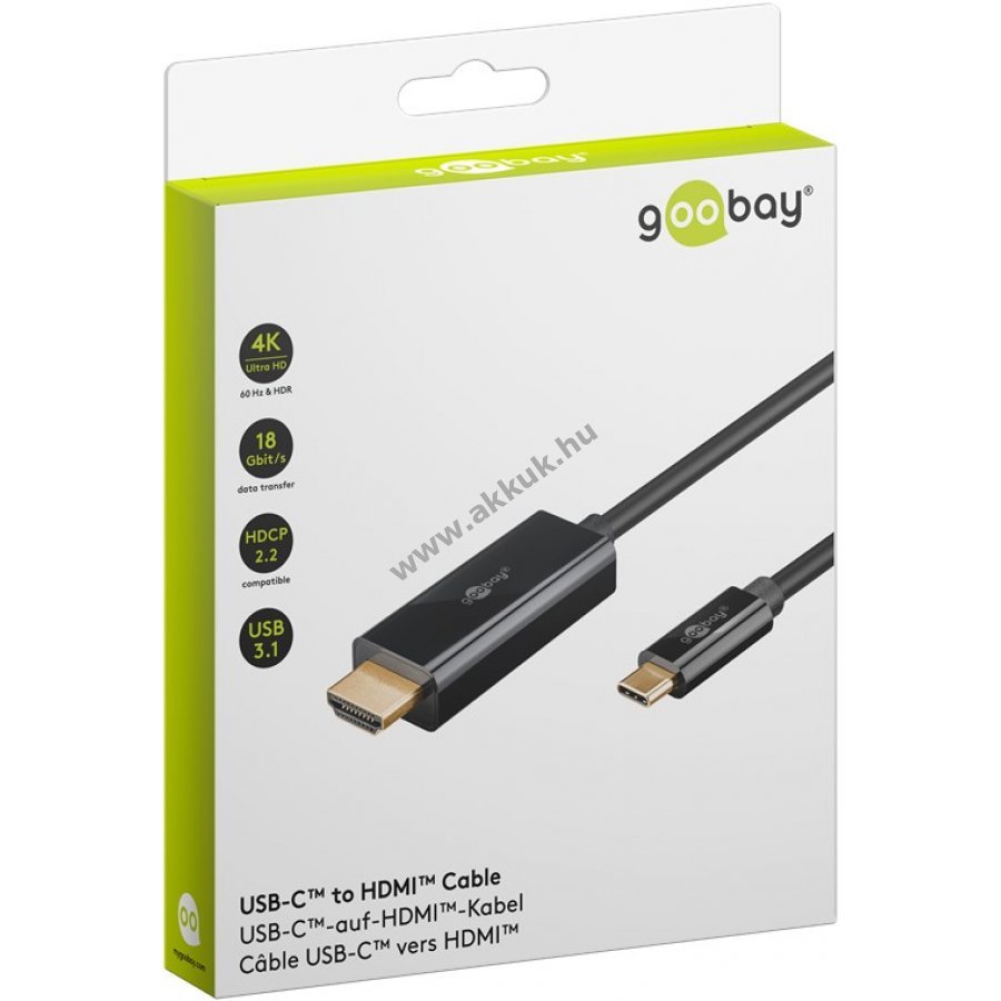 USB-C csatlakozóról HDMI eszközre továbbít 4K felbontást 60 Hz-en monitor, TV vagy projektor számára