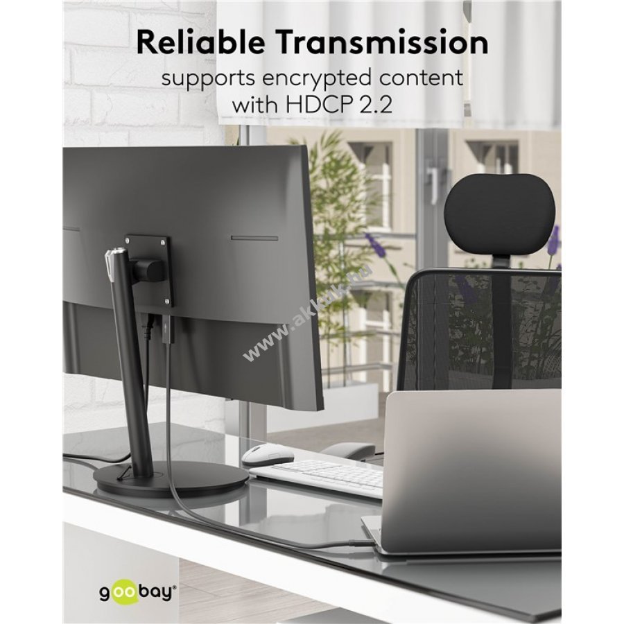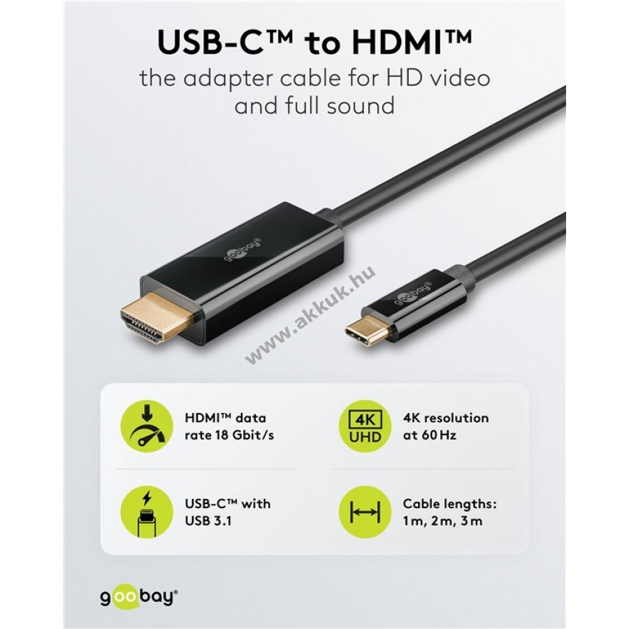 USB-C csatlakozóról HDMI eszközre továbbít 4K felbontást 60 Hz mellett. Kiváló kép- és hangátvitel USB-C képes eszközökről HDMI kijelzőkre, például játékhoz, otthoni mozizáshoz vagy munkához. Gyors adatátvitel akár 18 Gbit/s sebességgel HD streaminghez okostelefonokról, notebookokról, táblagépekről és más USB-C hosztokról. Támogatja a HDCP 2.2 szabványt a titkosított UHD tartalmak zavartalan lejátszásához. USB 3.1 csatlakozó kompatibilis Thunderbolt 3 és 4 portokkal valamint Apple iPhone 15, iPhone 16 és iPad készülékekkel. A kábel irányított, kizárólag USB-C forrásról HDMI célra használható.