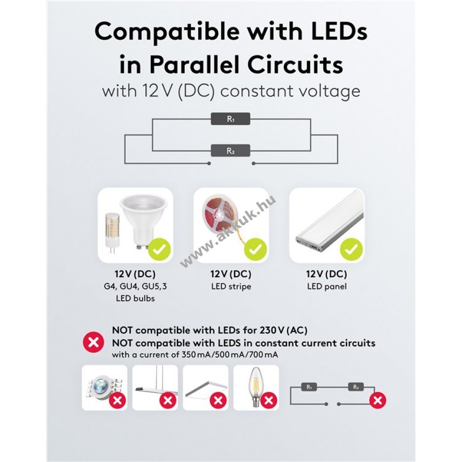 60 W teljesítményig több LED vagy LED szalag egyidejű táplálására alkalmas.