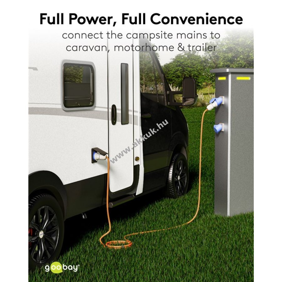 Praktikus megoldás kempinghez és kültéri használathoz. Gyorsan és egyszerűen hosszabbítja meg a meglévő CEE kábeleket, megbízható áramellátást biztosítva lakóautóban, lakókocsiban vagy építkezéseken. Biztonságosan csatlakoztatható 230 V hálózathoz kempinghelyeken, így minden szabadtéri túra kényelmes energiaellátást nyújt.