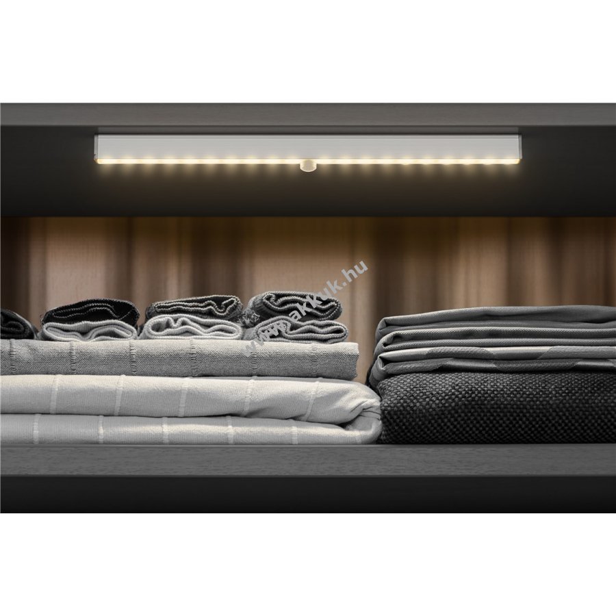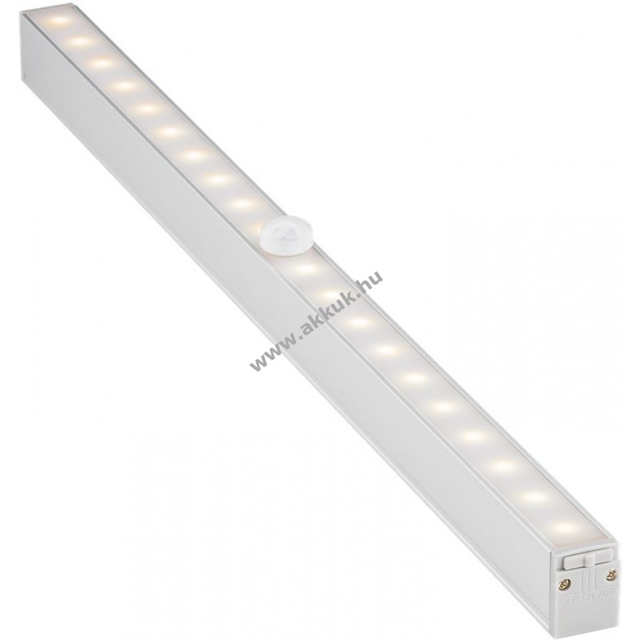 20 LED biztosít kellemes világítást 3 kapcsolóállású mód OFF ON automata mozgás- és fényérzékelővel automata módban sötétben mozgásra kapcsol be kikapcsolási késleltetés kb 18 s minőségi alumínium és PC anyag IP20 beltéri használatra nem vízálló egyszerű felszerelés mágneses szalaggal és 3M ragasztószalaggal vagy 2 csavarral és tartókkal 6x 1,5 V AAA elem szükséges nem tartozék