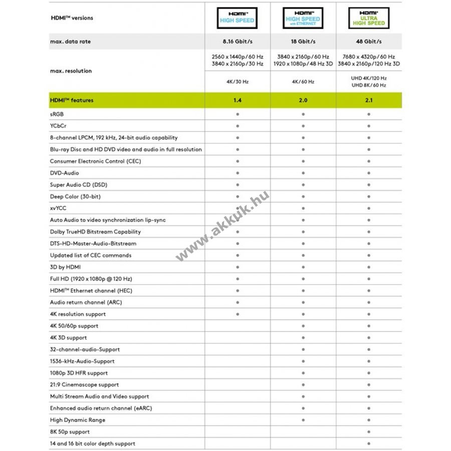 Támogatja az olyan funkciókat mint ARC, HDCP és 4K 3D tartalmak.
