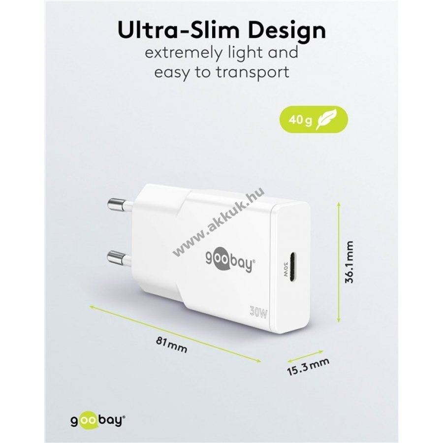 A Goobay Slim sorozatával egy extra vékony kialakítású töltőt kínálunk. Kifejezetten utazók igényeihez igazítva a vékony USB töltő bármilyen táskába vagy csomagba könnyen elfér. Ideális megoldás okostelefonok, táblagépek és okosórák töltésére útközben. 30W teljesítményével a töltő kifejezetten kis eszközökhöz, mint okostelefonok, Bluetooth fejhallgatók, táblagépek vagy powerbankok készült. Kompakt Slim dizájnjának köszönhetően egyszerűen elfér bármelyik táskában, így tökéletes útitárs. GaN félvezető technológia gyorsabb és hatékonyabb töltést tesz lehetővé valamint kisebb és könnyebb kialakítást biztosít a hagyományos töltőkhöz képest. Power Delivery technológia biztonságos és dinamikus töltést garantál az eszköz optimális teljesítményének felismerésével. Kompatibilis olyan okostelefon márkákkal mint Apple iPhone Samsung Xiaomi LG Huawei valamint Apple iPad és Samsung Galaxy táblagépekkel. Beépített védelmi áramkör megóvja az eszközöket túláramtól túltöltéstől és túlmelegedéstől.