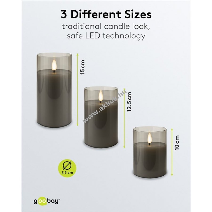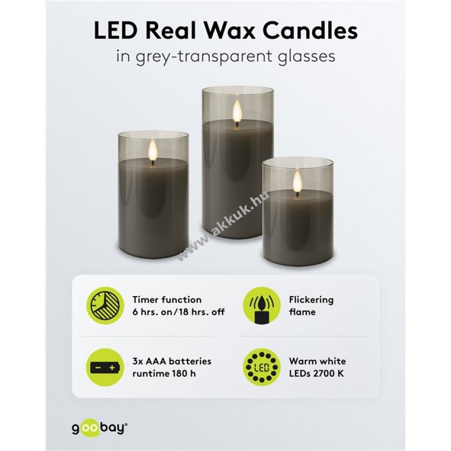 - Minden gyertya 3x AAA (mikroelem) elemmel működik (nem tartozék)