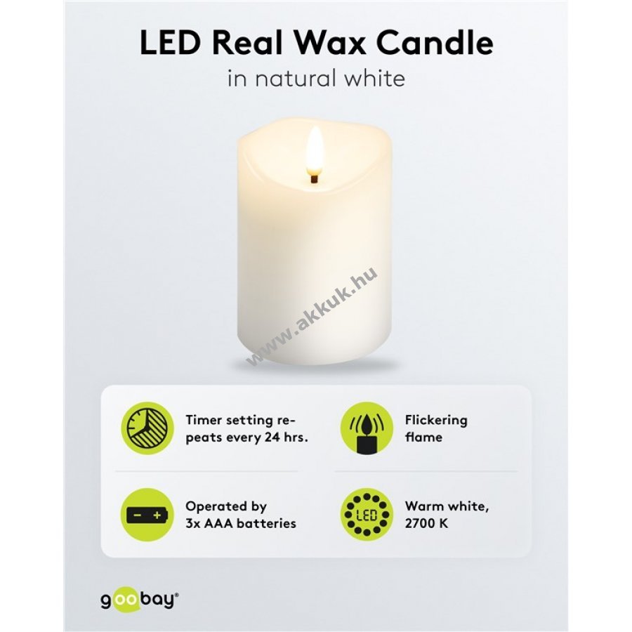 - stílusos, valódi viaszos bevonatú gyertya meleg, természetes hatású, pislákoló lánggal teljesen elektromos és biztonságos